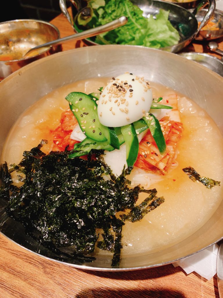 また、サイドメニューも充実しており、ネギチヂミや冷麺も注文しました。特にネギチヂミはカリカリで、一口食べるとクセになる美味しさでした。